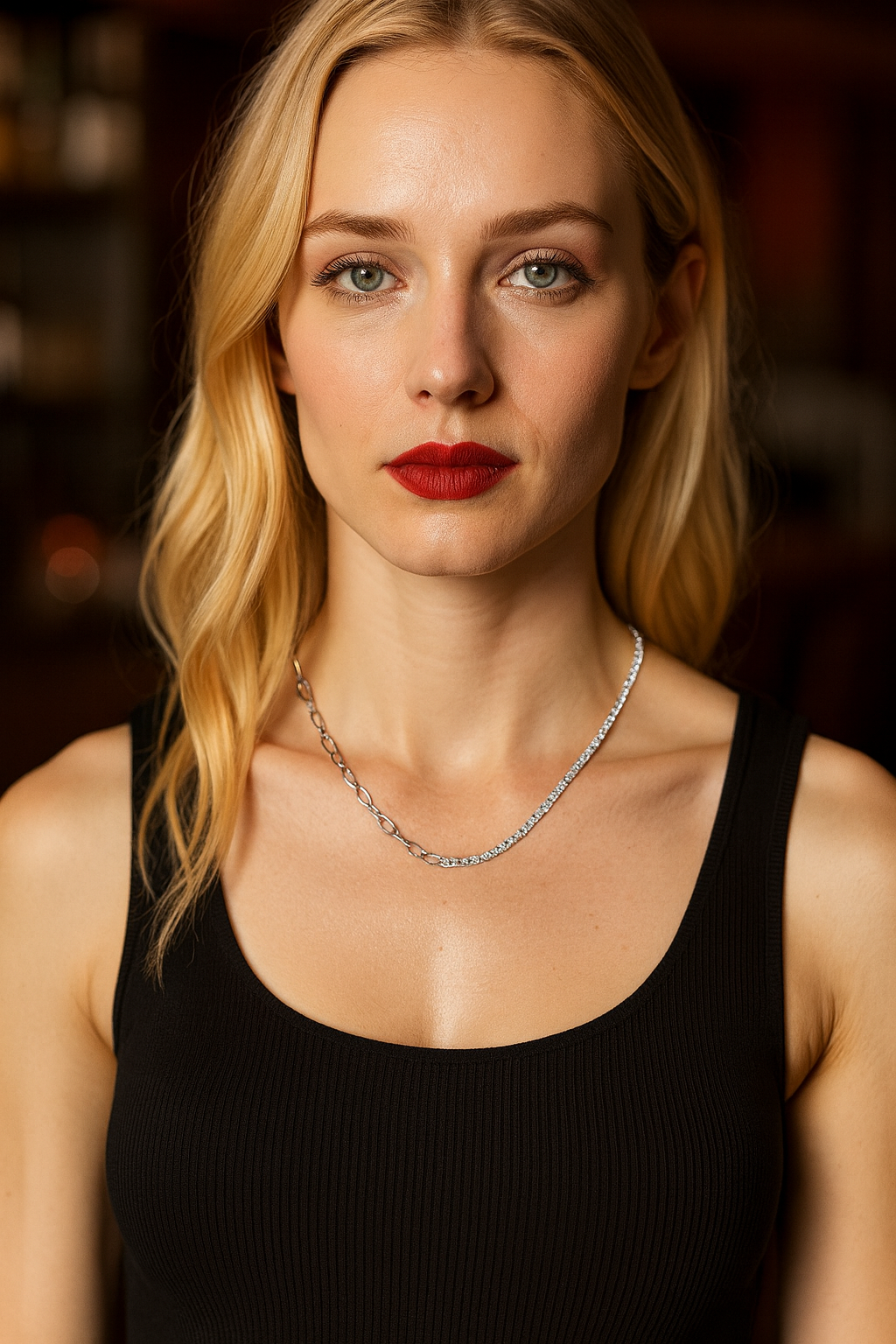 Collana di circa 45 cm dorata o argentata con cristalli colorati, chiusura regolabile.